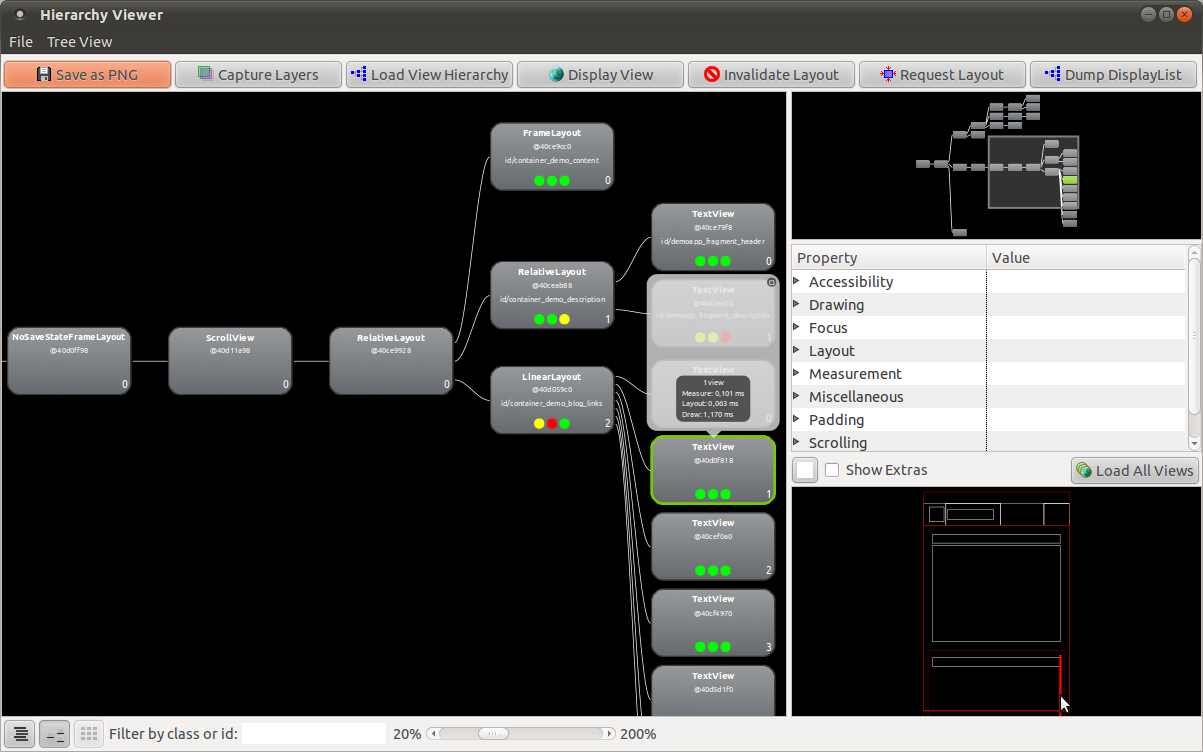 tests, but it would have been nice nonetheless if it could have been used for this as well. It's a much nicer tool than Hierarchy Viewer.